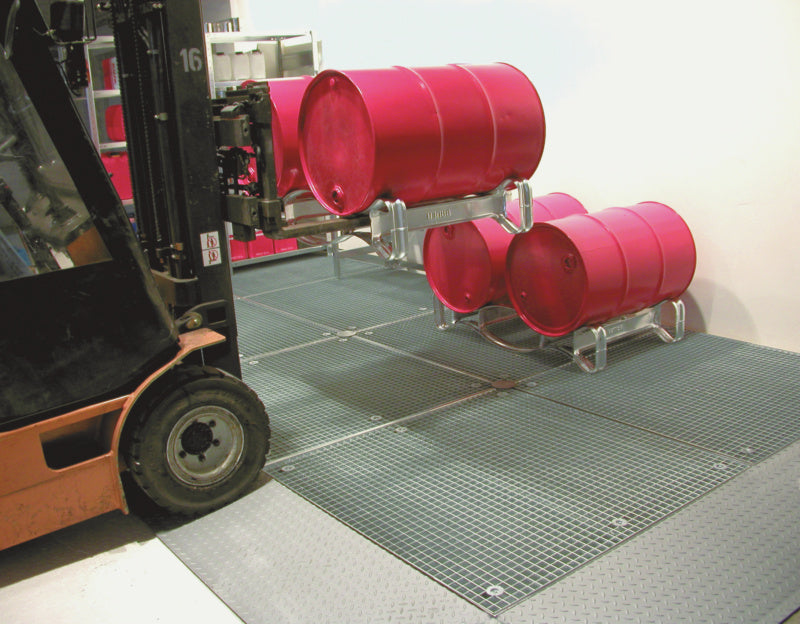 Posuvné ochranné vany pro skladování a plnění hořlavých kapalin v kategoriích GHS 1–3 a kapalin ohrožujících vody v kategoriích GHS 1–4.