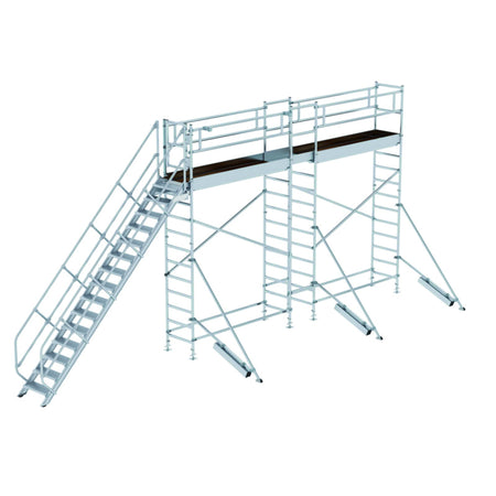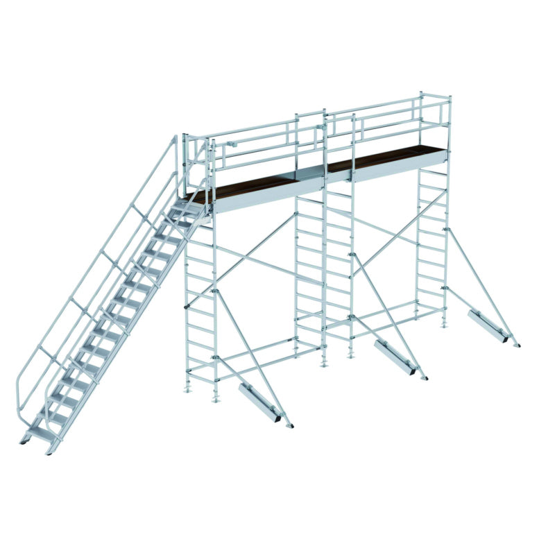 Pohodlný přístup na plošinu díky 45° schodišti se zábradlím na obou stranách a automaticky se zavírajícími bezpečnostními dvířky