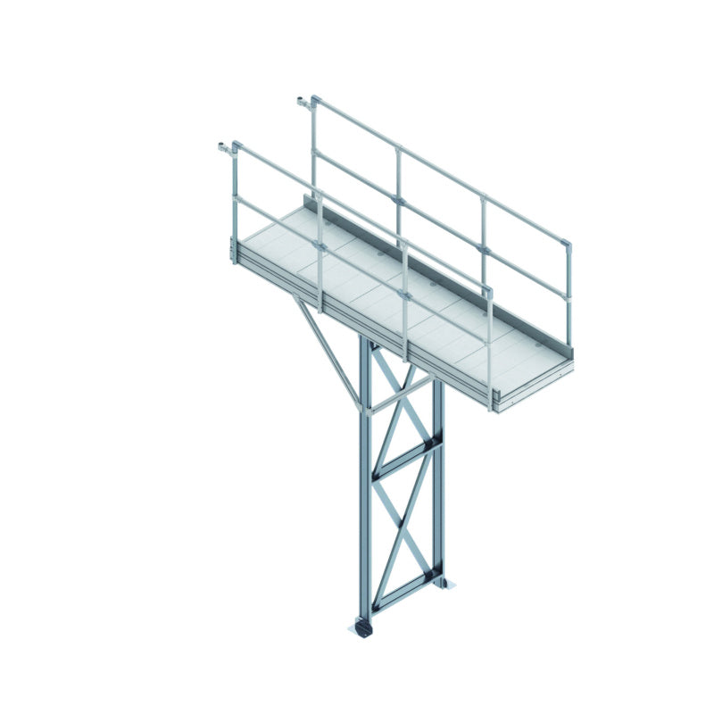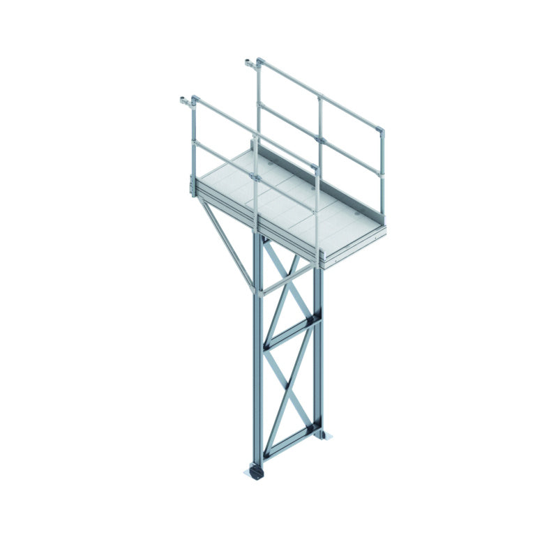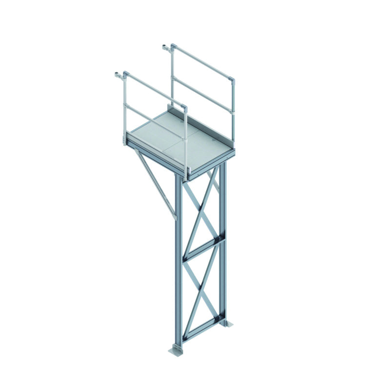 Příčle a povrchy plošiny z protiskluzové ocelové mřížky (R12) vhodné pro všechny povětrnostní podmínky. Mřížka s otvory také zabraňuje usazování nečistot, sněhu a vlhkosti na povrchu