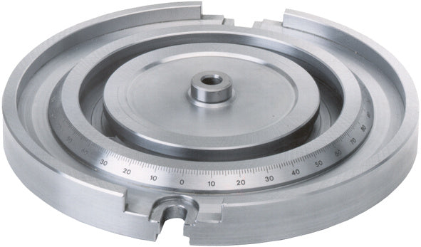 Pomocí otočné desky lze strojní svěrák volně umístit do libovolného úhlu. Primární použití otočné desky je na 3osém stroji.
