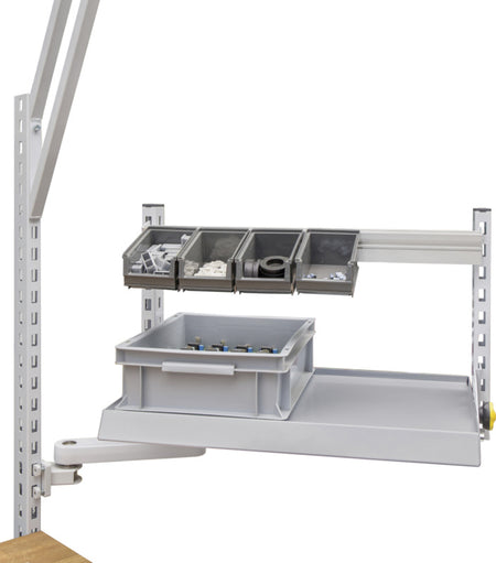 Rám opatřen nosnými lištami pro průhledné skladovací krabice, šířka 655 mm, 1 police 655(615) x 460(400) mm