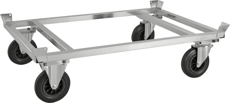 Paletový vozík vyrobený z oceli, s rohovými výztuhami, nízký