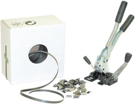 Páskovací přístroj 13 mm, plastová páskovací páska, délka 1000 m, šířka 12,7 mm, tloušťka 0,4 mm, spojky (2000 ks), délka 28 mm, šířka 13 mm