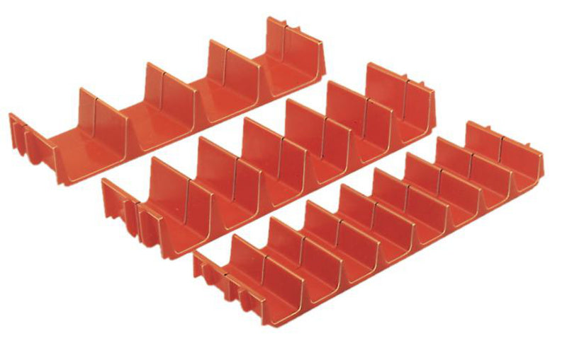 Pro zasunutí do štěrbinových pásků a rozdělení pomocí přepážek do prohlubní a zasouvacích přepážek do prohlubní.