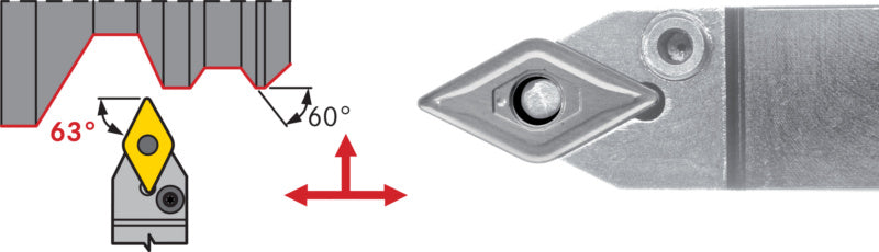 geometrie, optimalizovaná pro konturovací soustružení při velkých hloubkách posuvu a za náročných podmínek