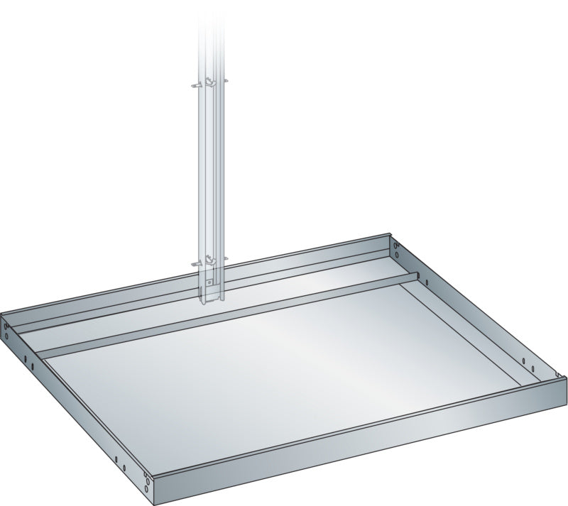 Uzamykatelné a pevné police: Uzamykatelné a pevné police jsou našroubovány ke sloupovým rámům v jakékoli poloze a jsou připravené na montáž systémů uzamykání zásuvek. Zahrnuje upevňovací materiál. Provedení: Ocelový plech.