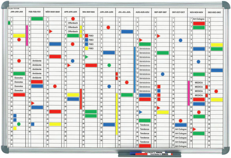 Horizontální rozdělení měsíců, natištěné názvy měsíců