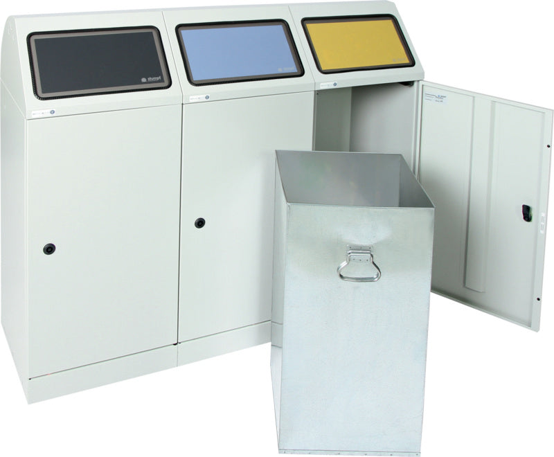 Plechový kontejner na recyklovatelný odpad, 3 nádoby