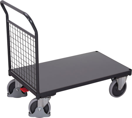 Plošinový vozík s čelní stěnou z drátěné mřížky