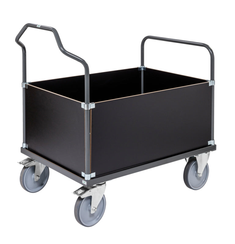 Plošinový vozík se čtyřmi bočními stěnami z opracovaného dřeva, výška 400 mm, řada ERGO