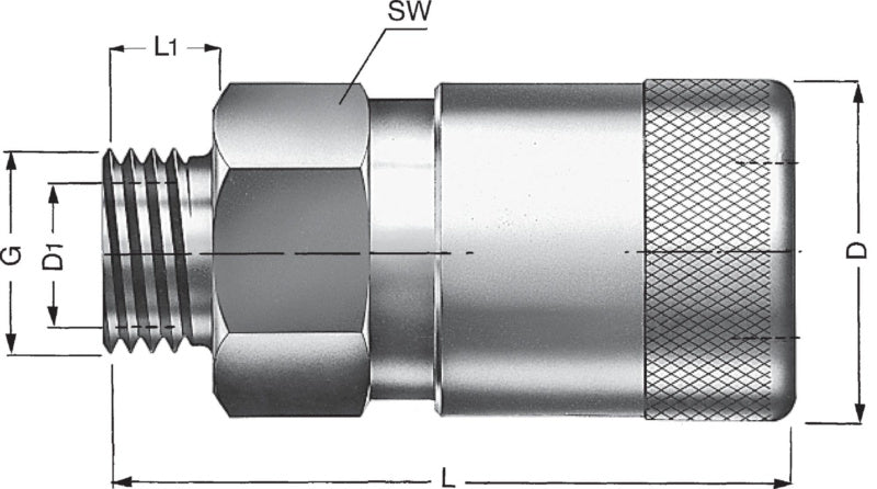 Pro bezpečné připojení hadic k pneumatickým strojům a příslušenství. Vhodná i pro permanentní instalace vedení stlačeného vzduchu.