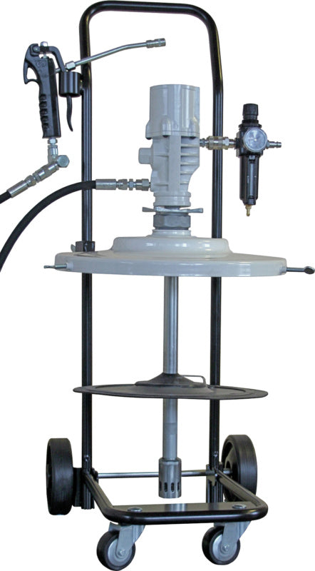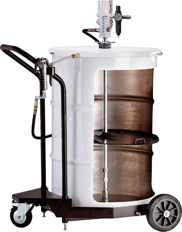 Mazací čerpadlo se systémem předpplnění Redukční ventil a odlučovač vody Kryt pro sledování maziva Ocelový protiprachový kryt s integrovaným šroubovým připojením k sudu 4m bezpečnostní vysokotlaká mazací hadice (1600 bar) Vysokotlaký mazací lis s kyvným kloubem 360°
