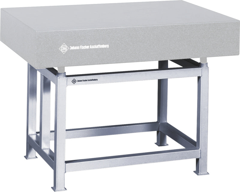 Odolný podstavec v otevřeném provedení zajišťuje bezpečné umístění základen z tvrdého kamene ve výrobních zařízeních a měřicích místnostech. Dodávané obruby opěr a uložení umožňují snadné a čisté zarovnání desky z tvrdého kamene pomocí jemných závitů.