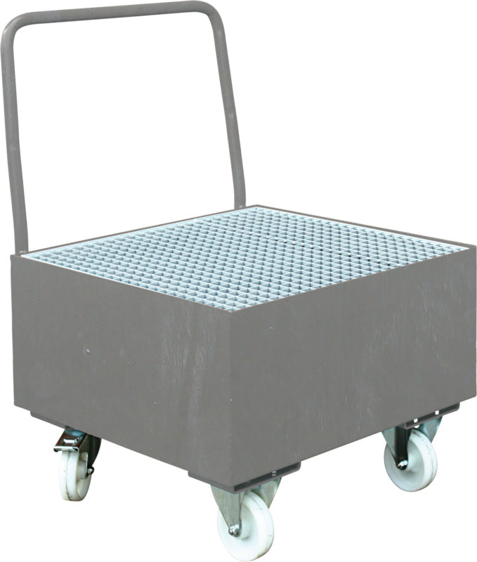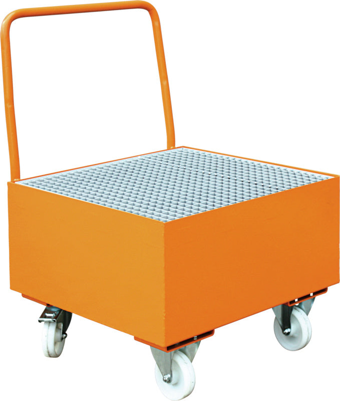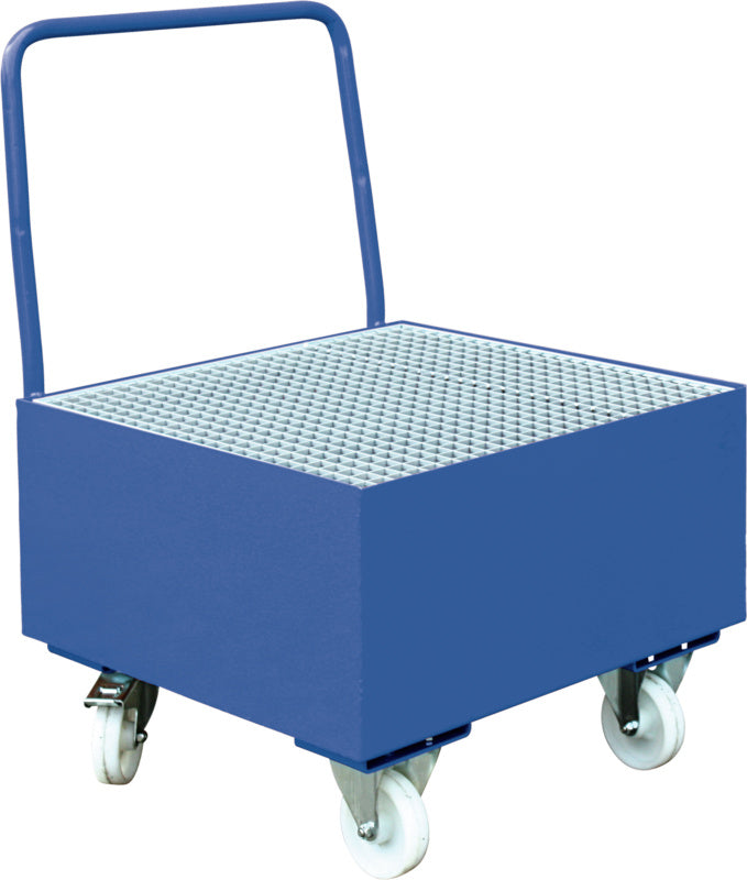 Mobilní ocelové odkapové vany se používají při skladování hořlavých kapalin nebo kapalin znečišťujících vodu. Díky praktickým madlům a kolečkům lze nebezpečné zboží přesouvat po pracovišti, aniž by se dotýkalo podlahy.