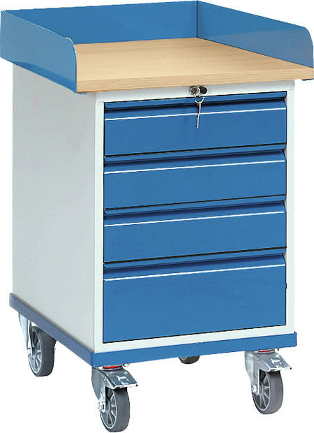 Zásuvková skříň, centrálně uzamykatelná, 3 zásuvky o výšce 120 mm a 1 zásuvka o výšce 180 mm, kuličkové pojezdy a zámek