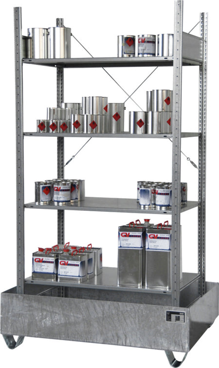 Pro předpisové a bezpečné uskladnění plechovek, schváleno pro hořlavé kapaliny kategorie GHS 1–3 a kapaliny ohrožující vody kategorií GHS 1–4.