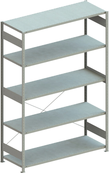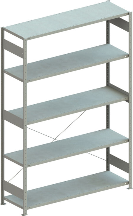 Univerzální regálový systém pro všechny druhy skladování, rychlá montáž nebo přestavba díky jednoduchému zasunutí polic bez použití nářadí