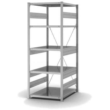 Univerzální ocelové regály pro použití ve skladech a dílnách. Regály poskytují prostor pro kartonové krabice, nepaletované zboží a kontejnery. K dispozici jsou vysoké nosnosti a široký rozsah rozměrů.