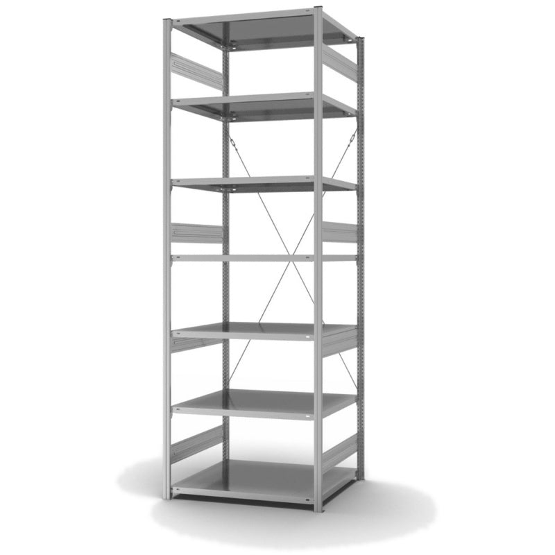Pozinkovaný regálový rám a police s přídavným plastovým povlakem RAL 7035 světle šedá (pozinkovaný montážní materiál)