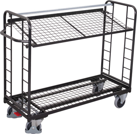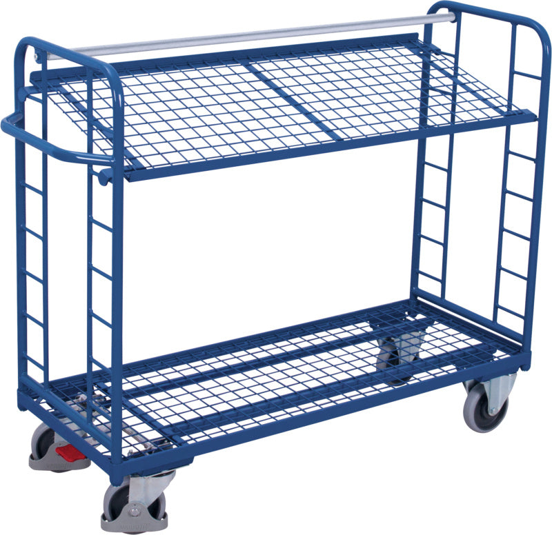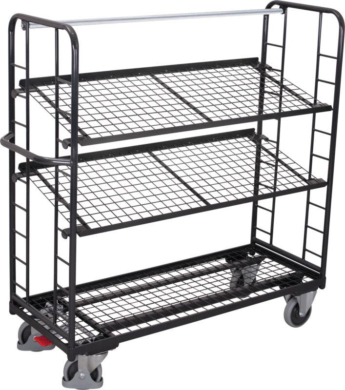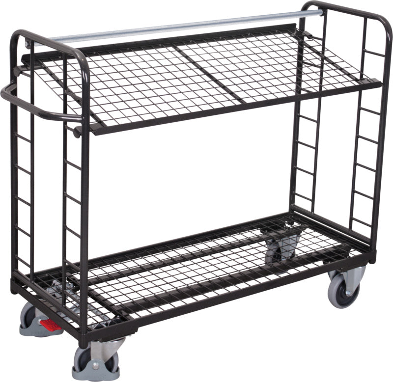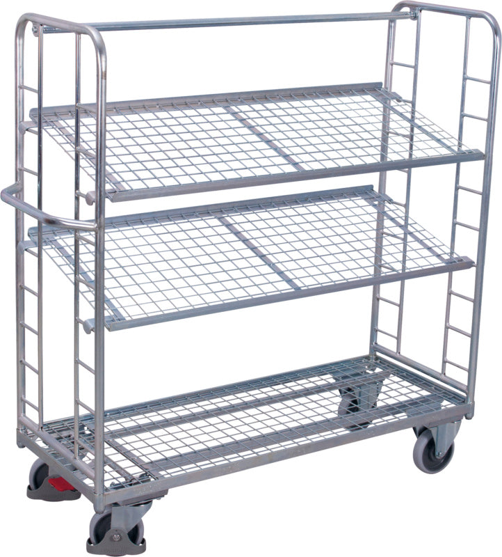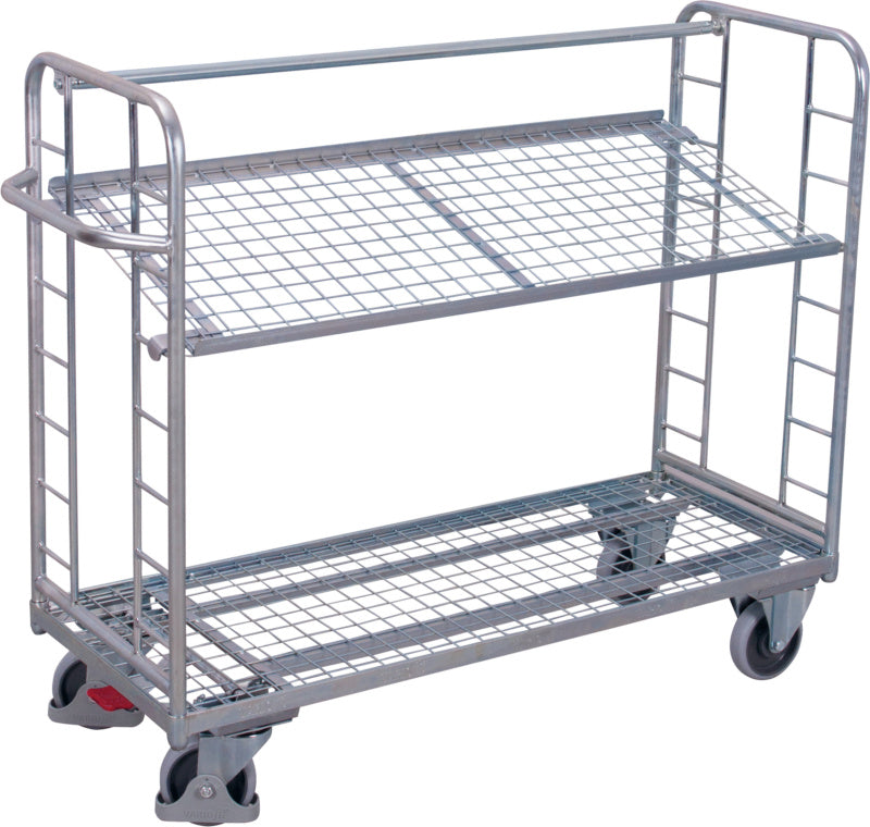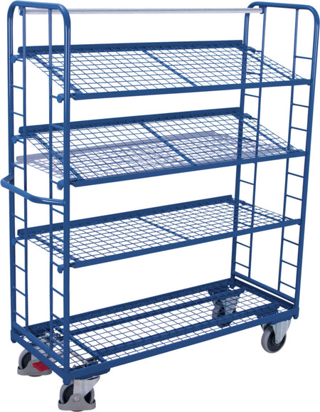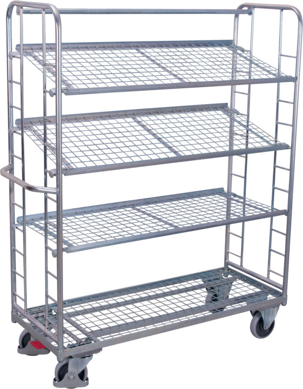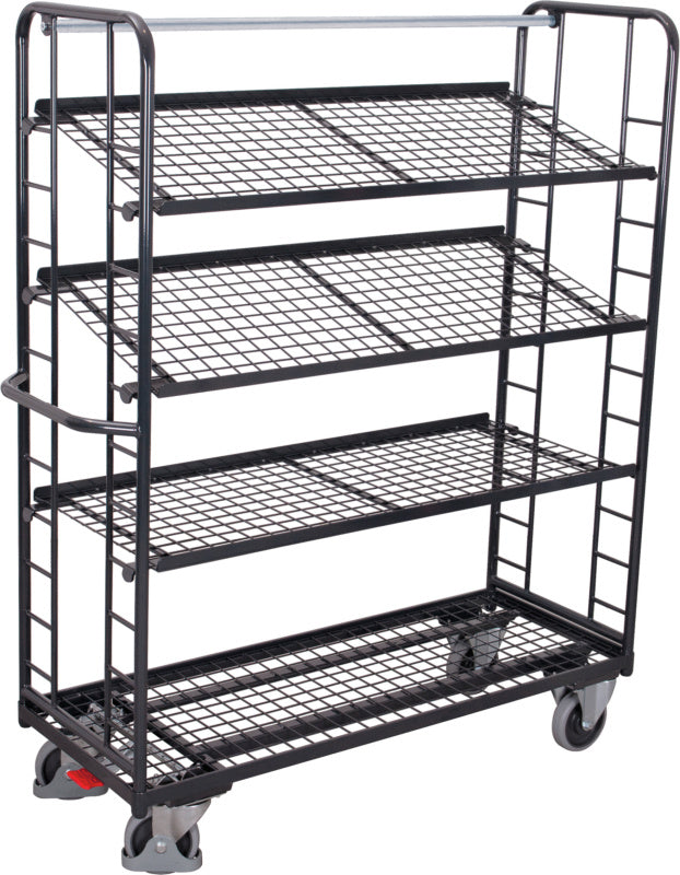 Policový vozík se čtyřmi policemi s drátěnou mřížkou
