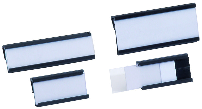 Popisovací jezdci pro prohlubňové stěny: jsou zasunuty přímo do stěn prohlubní. Včetně štítků a čiré fólie. Provedení: plast. Barva: černá: