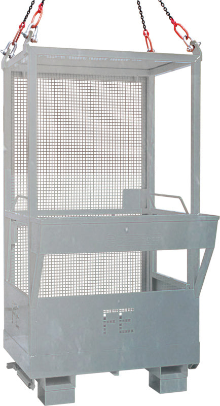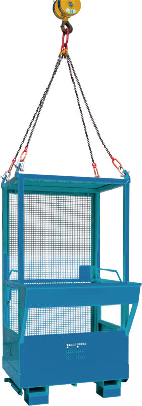 Až pro dvě osoby s nářadím. Vhodné pro vysokozdvižný vozík a jeřáb. Standardně dodáváno s praktickou přihrádkou na nářadí, čtyřmi zvedacími oky a bočními dveřmi. Řetězový závěs není součástí balení