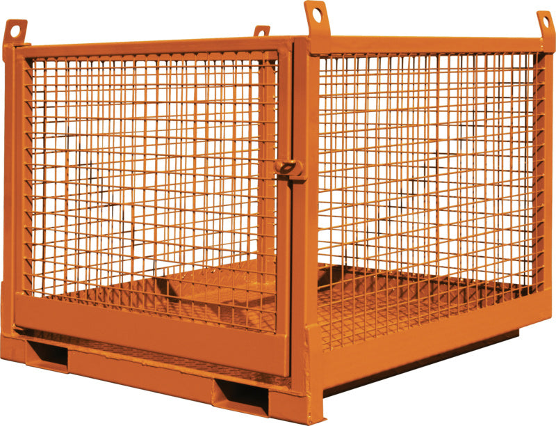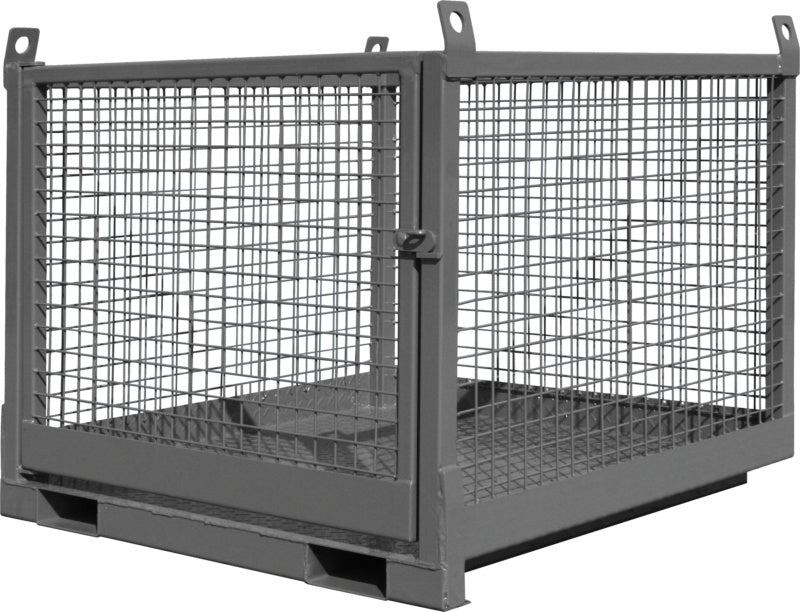 Rám tohoto přepravního boxu pro vysokozdvižné vozíky a jeřáby má pevnou trubkovou konstrukci. Stěny jsou vyrobeny z drátěné mříže a spodní deska je vyrobena z protiskluzového plechu. Rozměry přepravní krabice jsou přizpůsobeny rozměrům Euro-palety. Zdvihací oka a kapsy pro vidlici vysokozdvižného vozíku jsou součástí standardní výbavy.