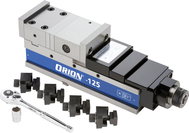 1x přesný svěrák; včetně nastavitelných upínek, vhodného nástavce nástrčného klíče a ráčny
