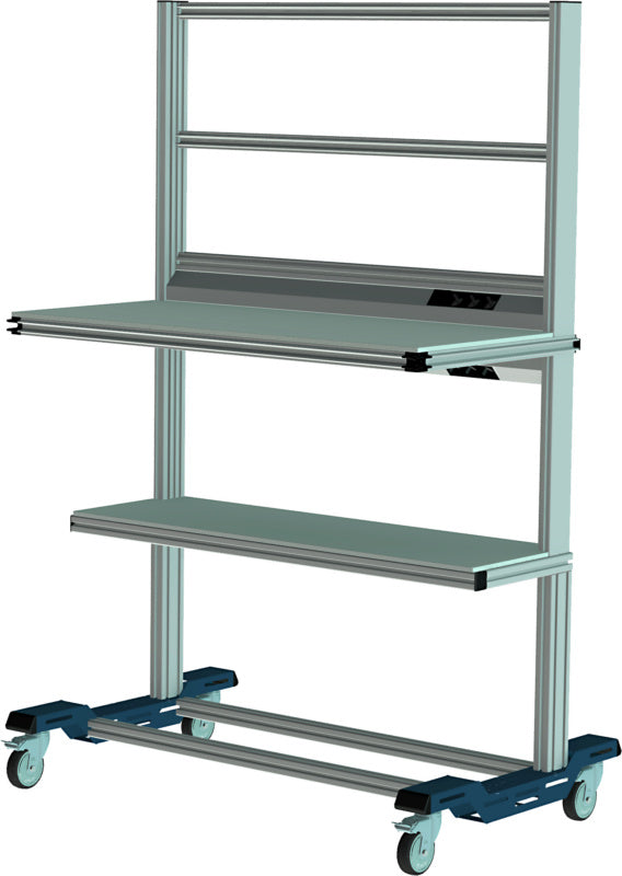 Mobilní pracovní stanice, která je ideální pro použití jako počítačová pracovní stanice se speciálně vyvýšeným pracovním povrchem. Horní plochu CLIP-O-FLEX® lze optimálně vybavit až dvěma držáky monitoru na každé straně. Monitory lze namontovat po obou stranách. Úložná police pro tiskárnu nebo počítač včetně vyhrazeného napájecího zdroje.