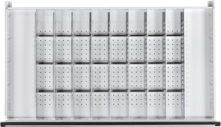 Přihrádkové lišty a přihrádkové dělicí lišty, 34 přihrádek pro zásuvky 1200 x 600 mm