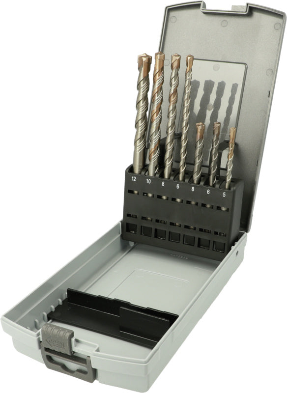 Příklepový vrták, hlava se čtyřmi řeznými hranami, stopka SDS-plus, sada