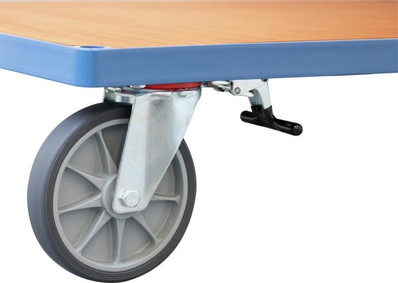 Namísto dvou pevných koleček jsou namontována dvě otočná kolečka se směrovými brzdami (aretace 4x 90°)