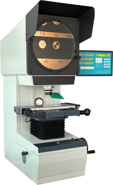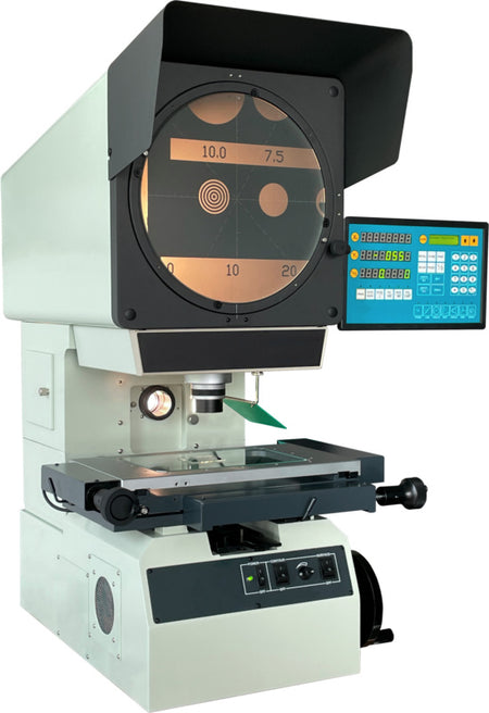 Profilový projektor, objektiv 10×, volitelně zobrazovací systém nebo měřicí počítač a zrcátko pro horní světlo 10×