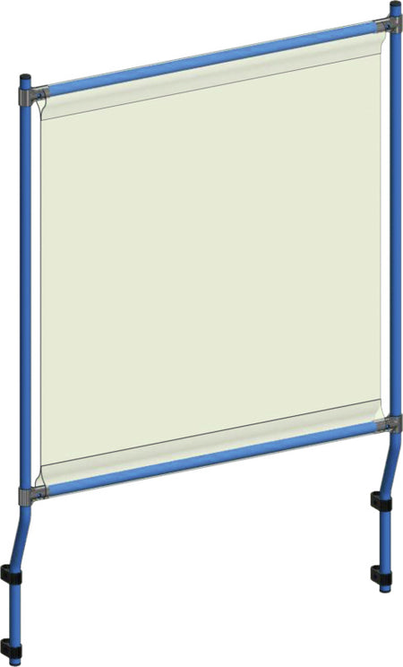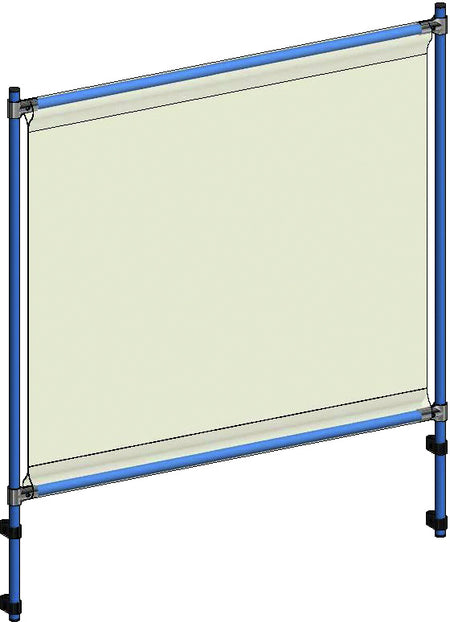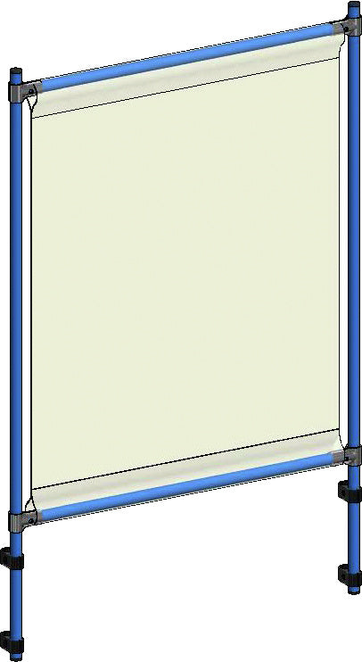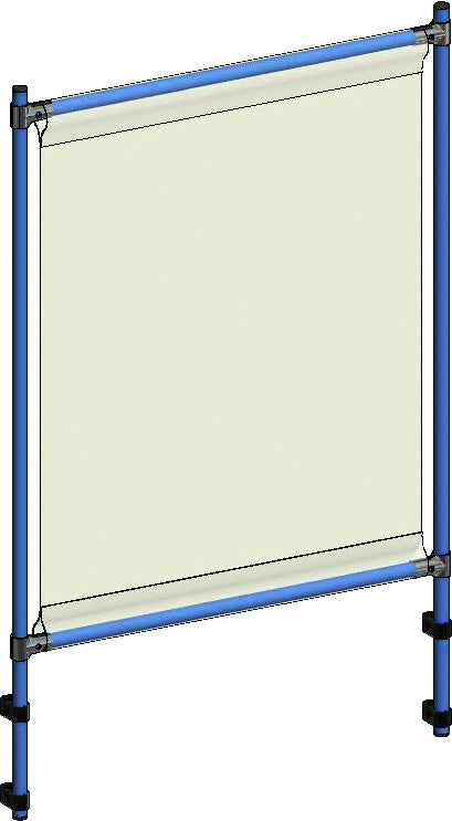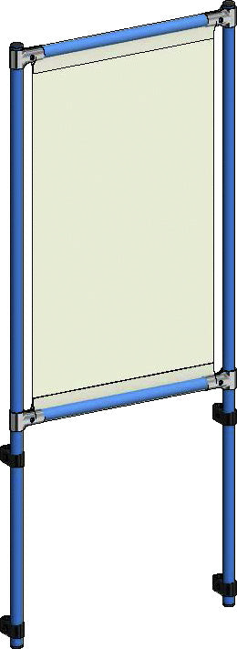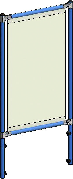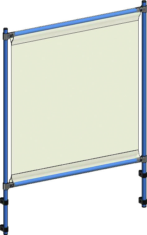 Rámová konstrukce z modrých, práškově lakovaných ocelových trubek, které jsou jednoduše sešroubovány dohromady