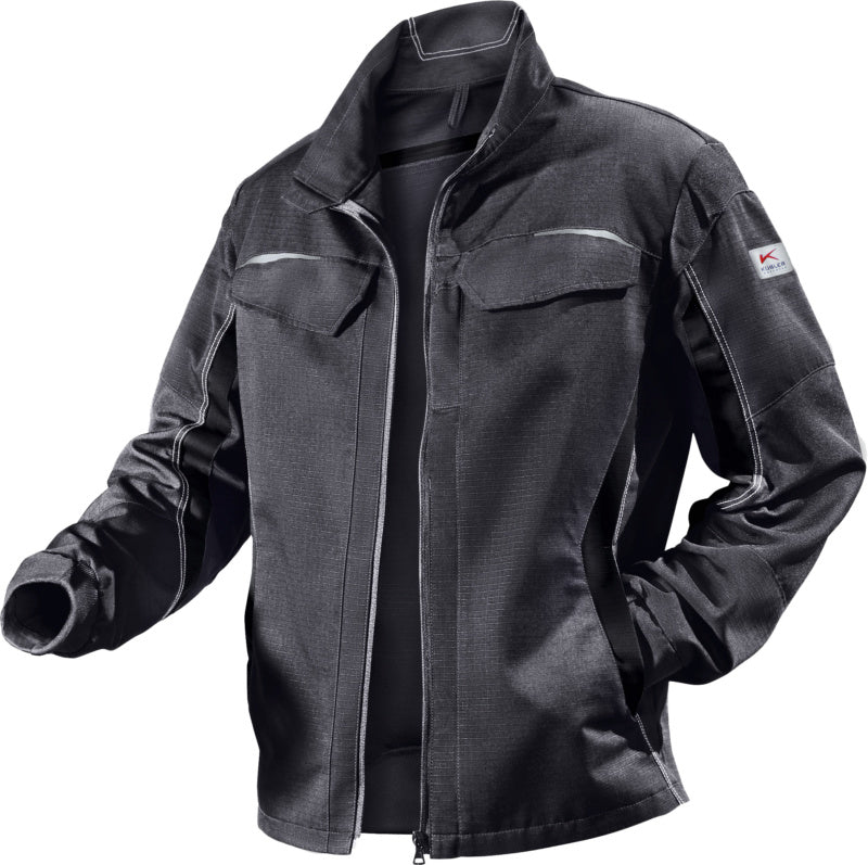 2 náprsní kapsy s klopou a uzávěrem na suchý zip, 2 postranní kapsy s patentem, 2 vnitřní kapsy (pravá strana: s kapsou na smartphone)