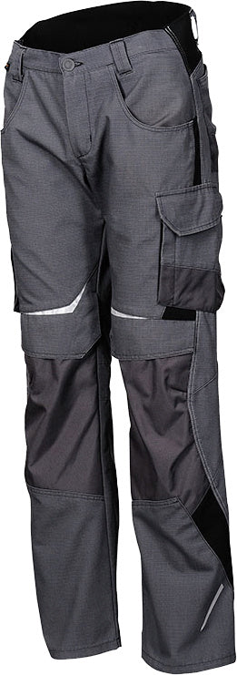 Předem tvarovaná kolena s pohybovou zónou pro ergonomickou práci při klečení, ochranné vložky na kolenou z materiálu CORDURA® (lze naplnit shora), s klopou a zapínáním na suchý zip)