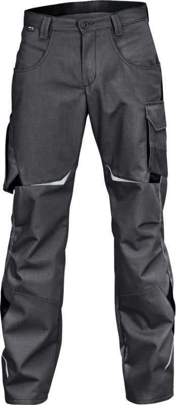 2 postranní kapsy s funkcí pro rychlé sáhnutí, 2 zadní kapsy s výztuhou z materiálu CORDURA® (pravá s klopou a uzávěrem na suchý zip), pravá strana: 1 volná dvojitá kapsa na měřítko s výztuhou z materiálu CORDURA® a s další kapsou na zip, levá strana: 1 kapsa na stehně se zesílením z materiálu CORDURA®, klopou a zapínáním na suchý zip a další kapsou na zip