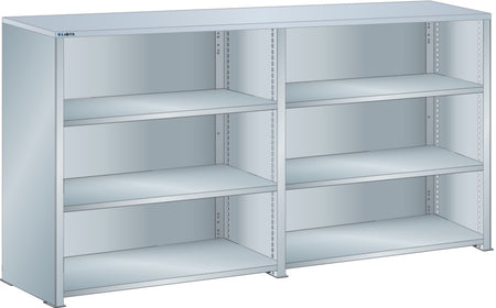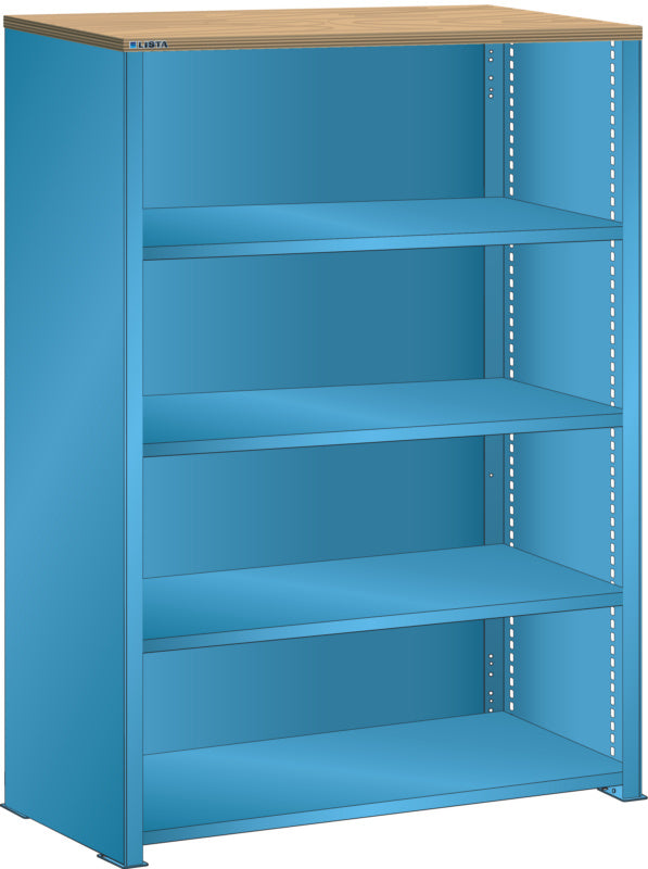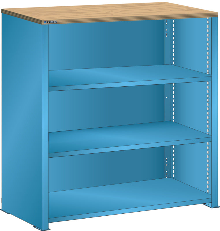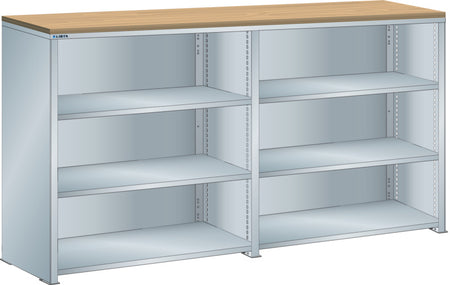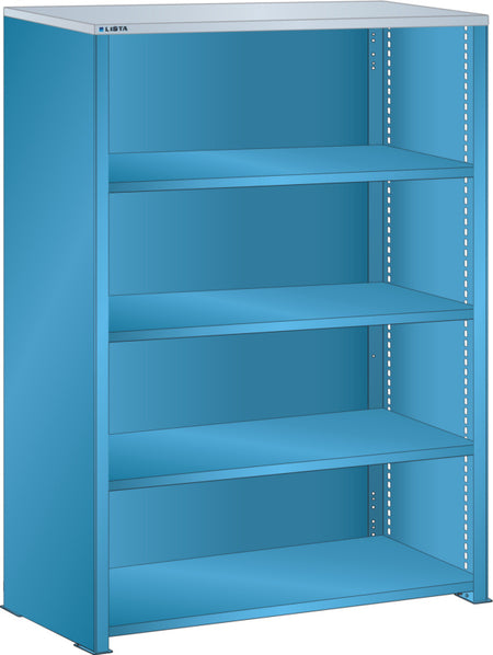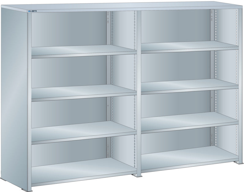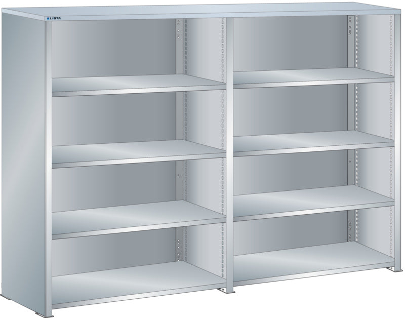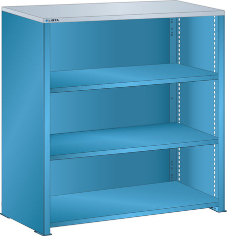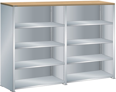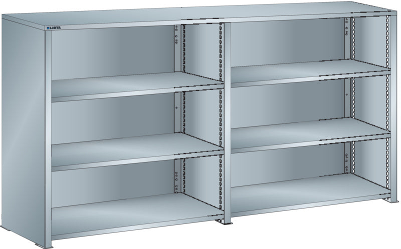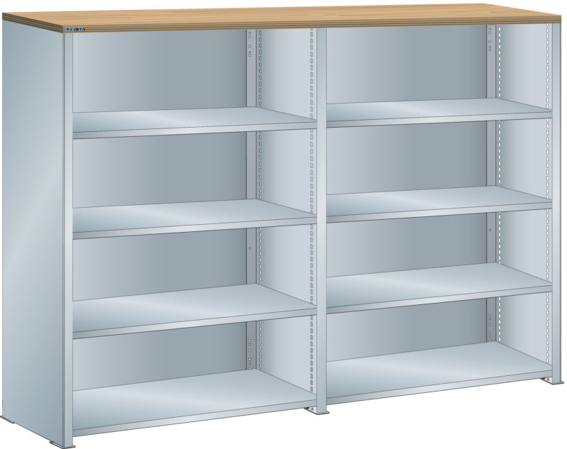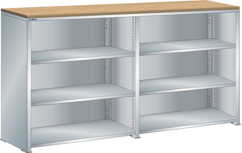 Bočnice: Výbava: Volitelně s krycím deskou z překližky nebo syntetické pryskyřice. Krycí desky se upevňují pomocí závěsných montážních konzol. Včetně otvorů a upevňovacího materiálu. Boční stěny, uzavírací boční stěny (pravé a levé) pro zakrytí řad štěrbin a pro lícující spojení s předním trojúhelníkovými skládanými okraji, zadní deska pro zakrytí policových polí vzadu a podélnou stabilizaci. Verze: Ocelový plech. Barva: dle barevného schématu nebo pozinkovaný povrch.