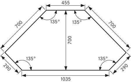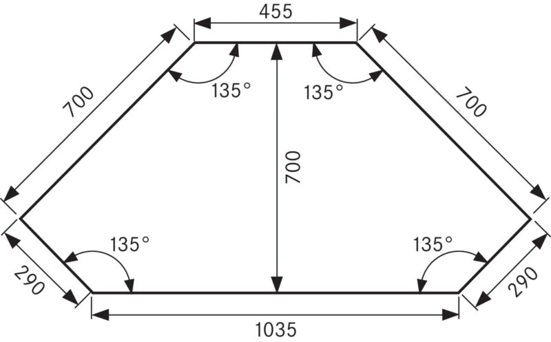 Rohová deska dílenského stolu 135° pro nástavbu dílenského stolu