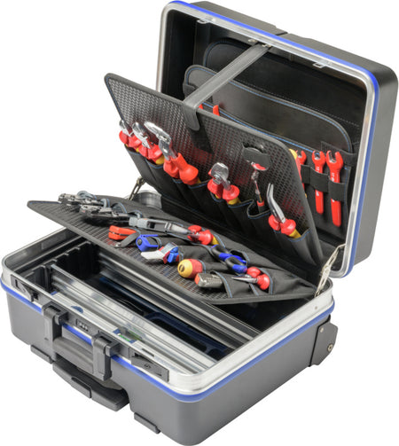 Všité přihrádky na nářadí, přihrádka na dokumenty ve víku