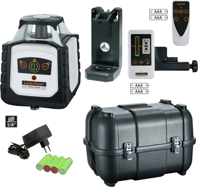 Laser: zelený 515 nm, laserové linie: 1x 360°, 1x vertikální referenční paprsek nahoře