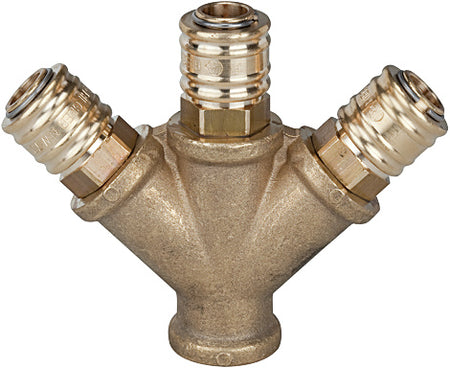 1-, 2- nebo 3cestné sekce rozdělovače z hladké mosazi, připravené s rychlospojkou NW 7.2.