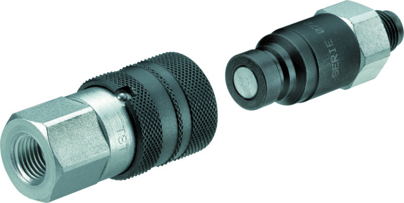 Rychlospojka s plochým těsněním a vnitřním závitem G1/4. Stavěcí šroub je součástí dodávky vnějšího závitu G1/4.