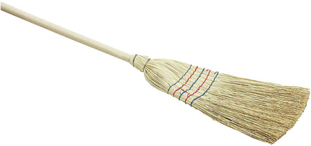 Dřevěná násada pevně připevněná k hlavici smetáku, s otvorem pro zavěšení