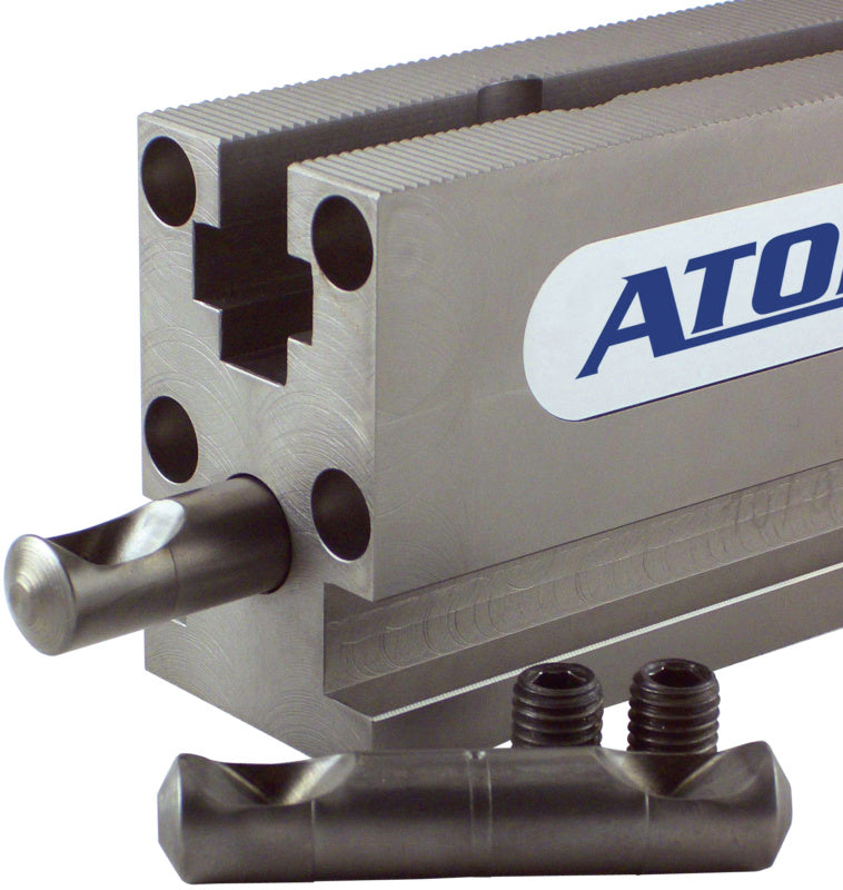 Prodlužovací svorník je připojen k liště pomocí dvou šikmých otvorů