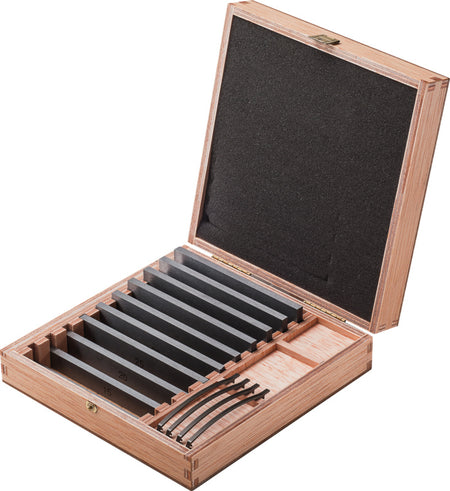 1 sada ve dřevěném pouzdře obsahuje 10x různé páry lišt a 4x upínací třmeny.