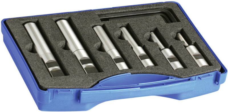 přesně vyrobený držák HSSE s 64 HRC, tolerance házivosti = 0,01 mm, válcová stopka a upínací plocha podle normy DIN 1835, pro pilové kotouče o průměrech 20/25/32/40/50/63, upínací šrouby a upínací disky