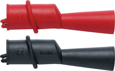 Při měření elektrických parametrů použijte krokosvorky k upevnění vedení. Jednoduše vložte měřicí kabely do krokosvorky a během měření nechte ruce volné pro další aktivity. Pro standardní měřicí kabel Testo s číslem výrobku 75024478 a měřicí kabely od jiných značek s 2mm konektory.