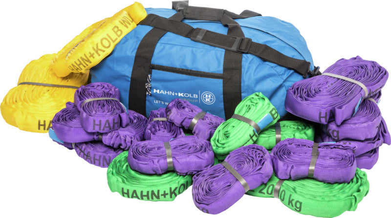 Včetně kulatých popruhů: 2 x 1000 kg, užitečná délka L1 = 1 m, 4 x 1000 kg, užitečná délka L1 = 2 m, 2 x 1000 kg, užitečná délka L1 = 3 m, 4 x 1000 kg, užitečná délka L1 = 4 m, 2 x 2000 kg, užitečná délka L1 = 2 m, 2 x 2000 kg, užitečná délka L1 = 4 m, 2 x 3000 kg, užitečná délka L1 = 4 m