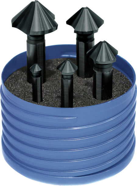 Sada kuželových záhlubníků HSS 90°, trojbřité, extrémně nerovnoměrný sklon
